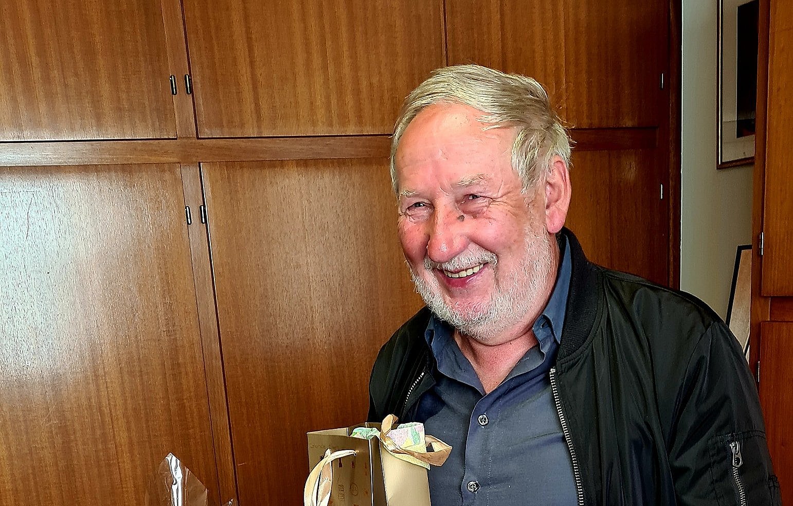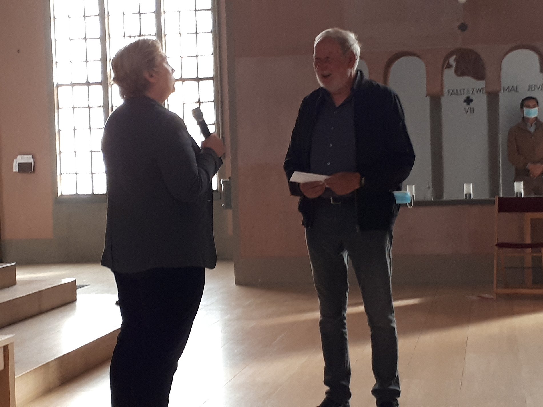 Holy Cross's long-time sacristan, Otmar Niewiem, is retiring and Pastoral Associate Lori Bemb presented him with some going-away presents at the end of Mass on Sept. 26, 2021.