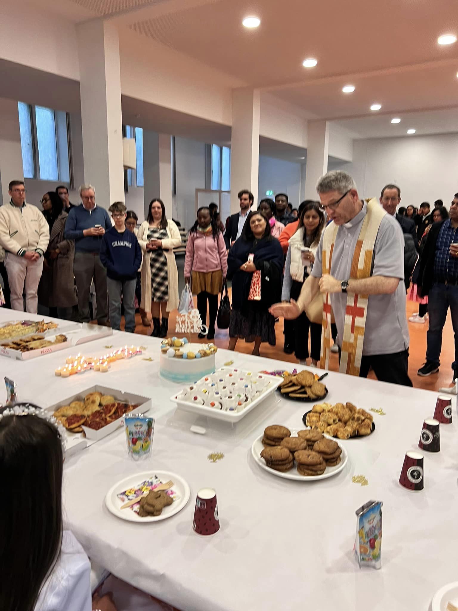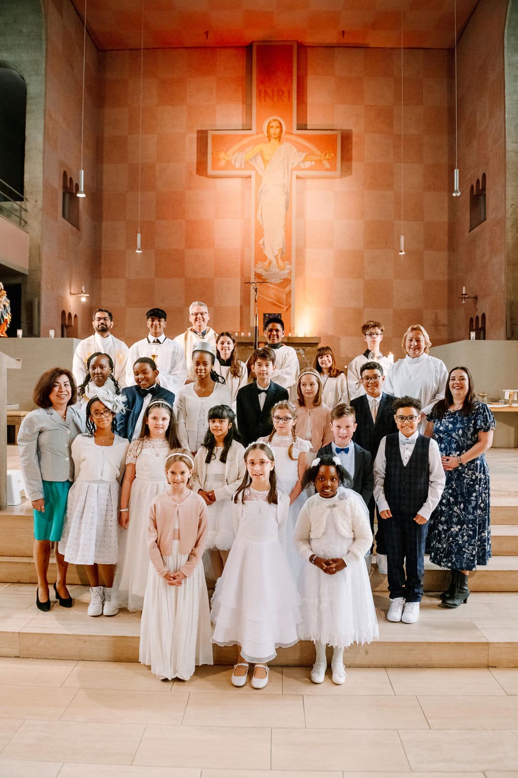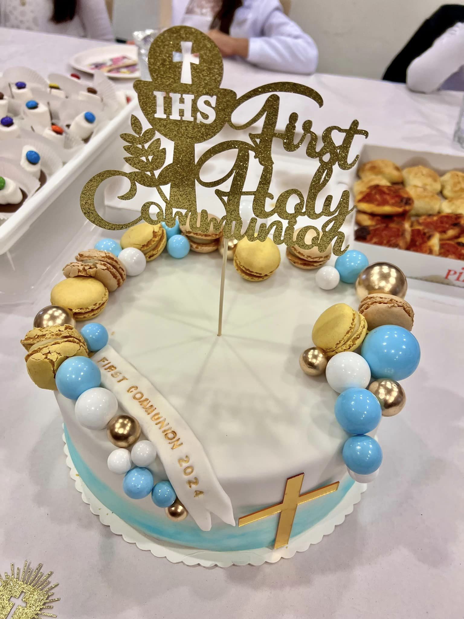 The First Holy Communion Class of 2024 received the Blessed Sacrament on April 26 at Holy Cross Church, and their parents provided cake and the children received their certificates at the weekly after-Mass coffee social there on Sunday, May 5.