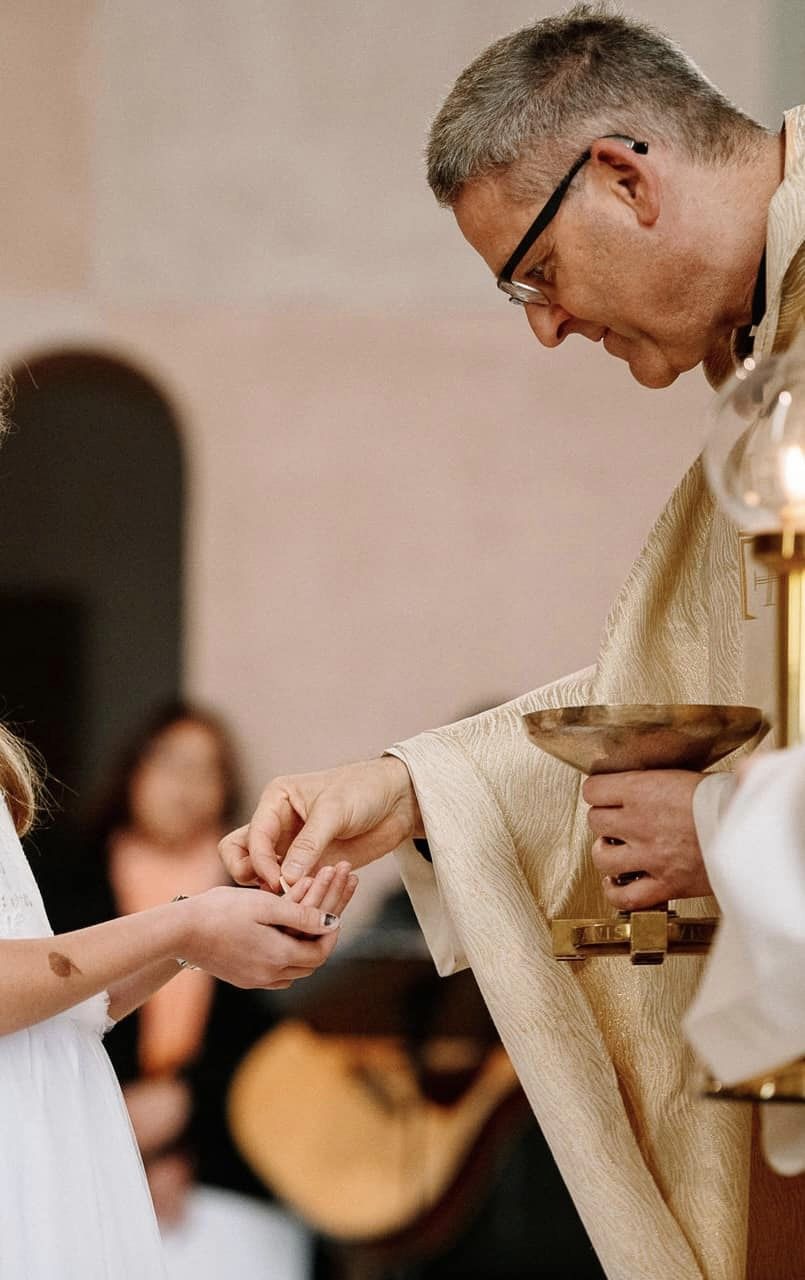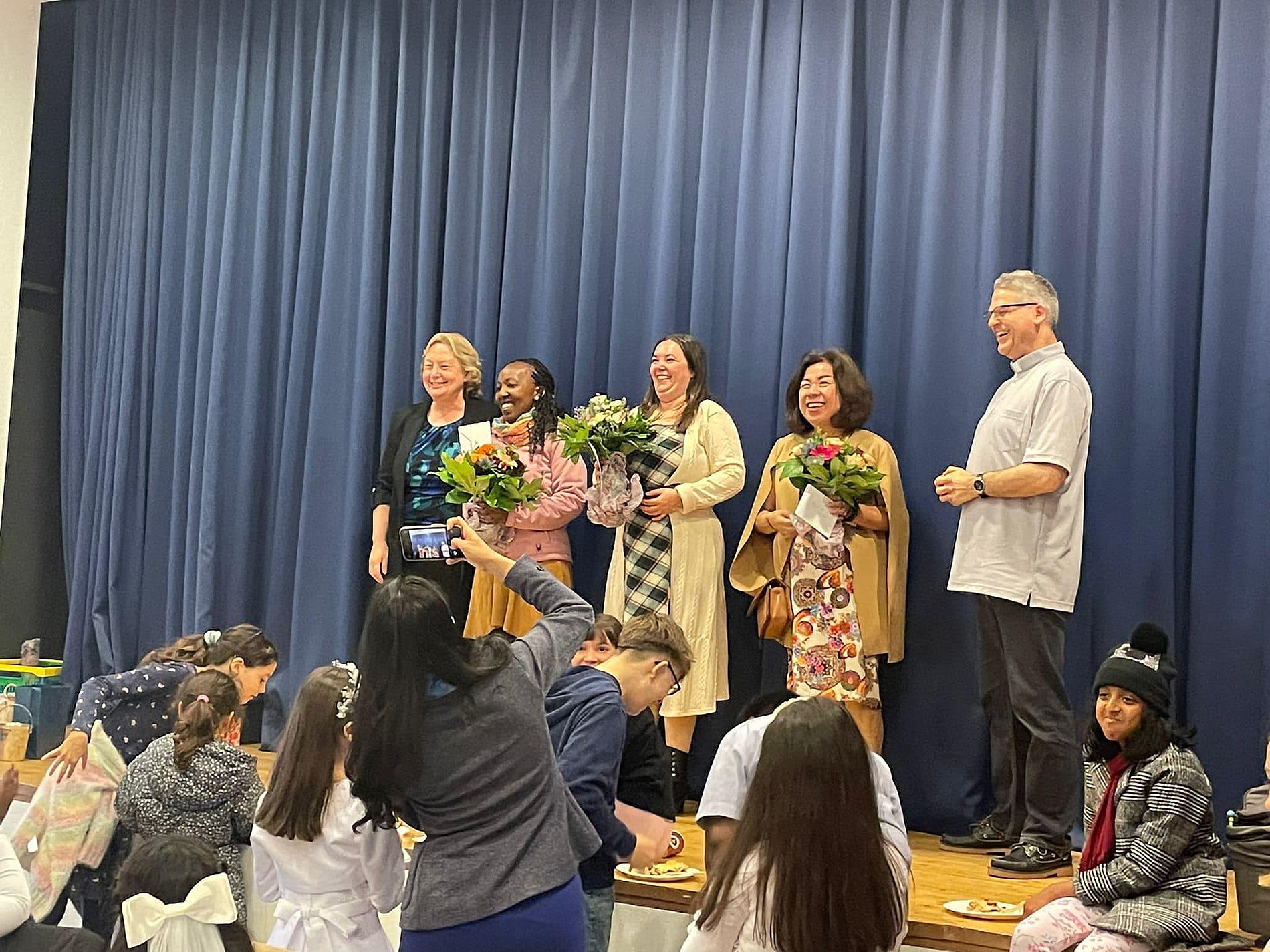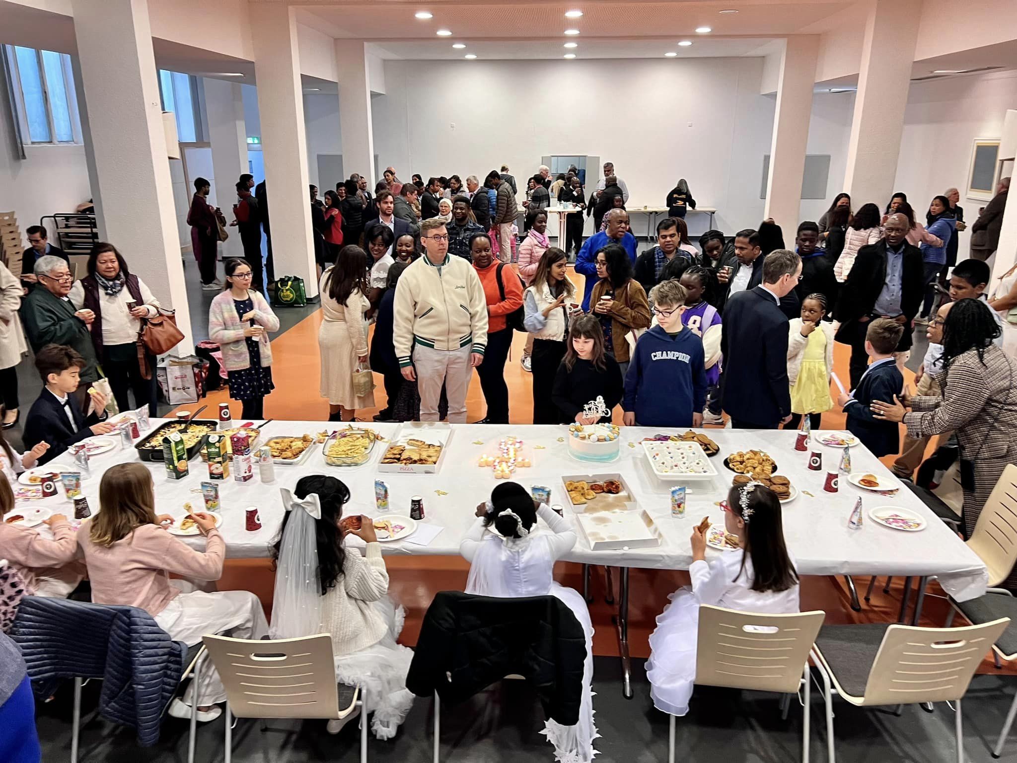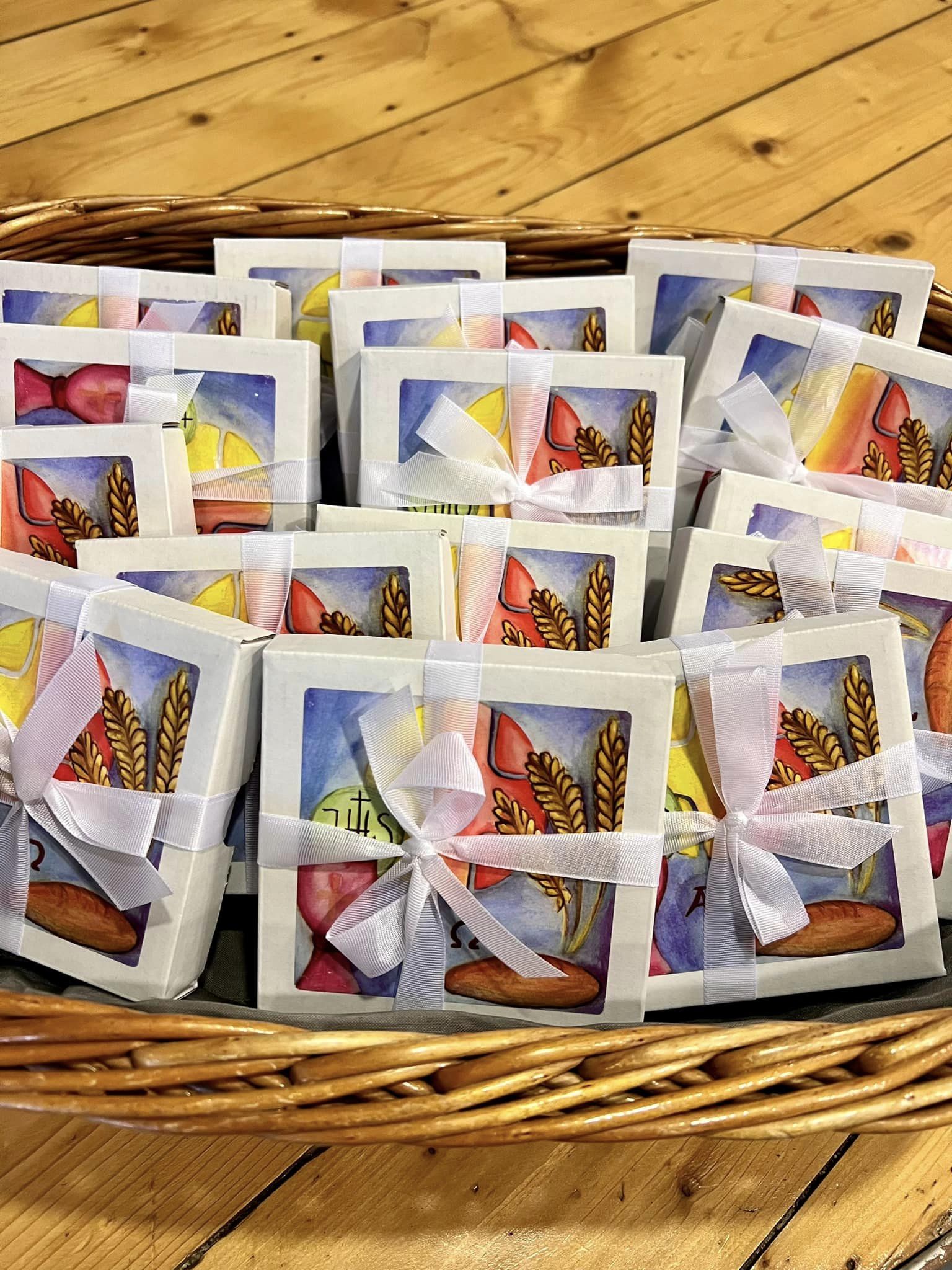 The First Holy Communion Class of 2024 received the Blessed Sacrament on April 26 at Holy Cross Church, and their parents provided cake and the children received their certificates at the weekly after-Mass coffee social there on Sunday, May 5.