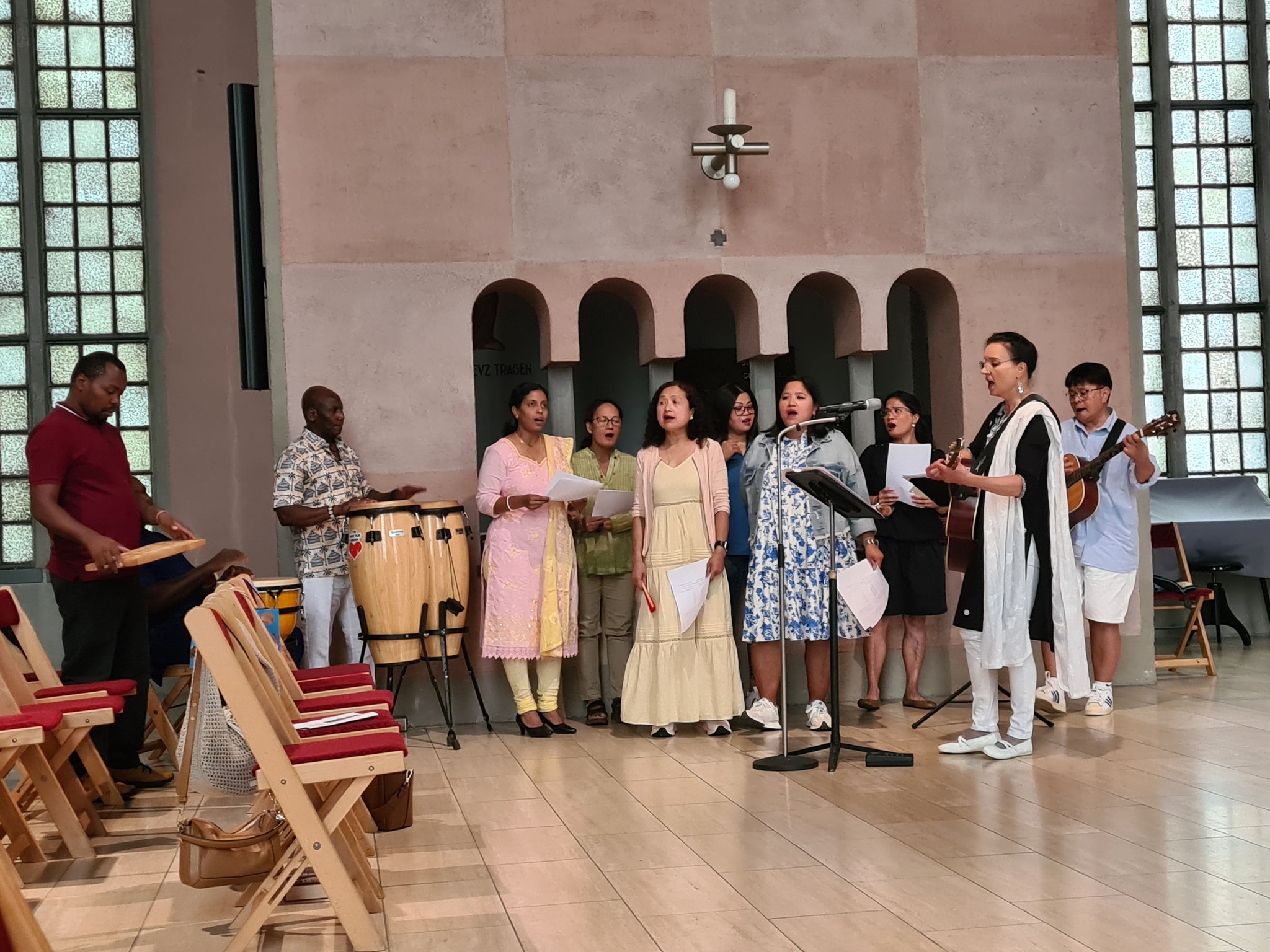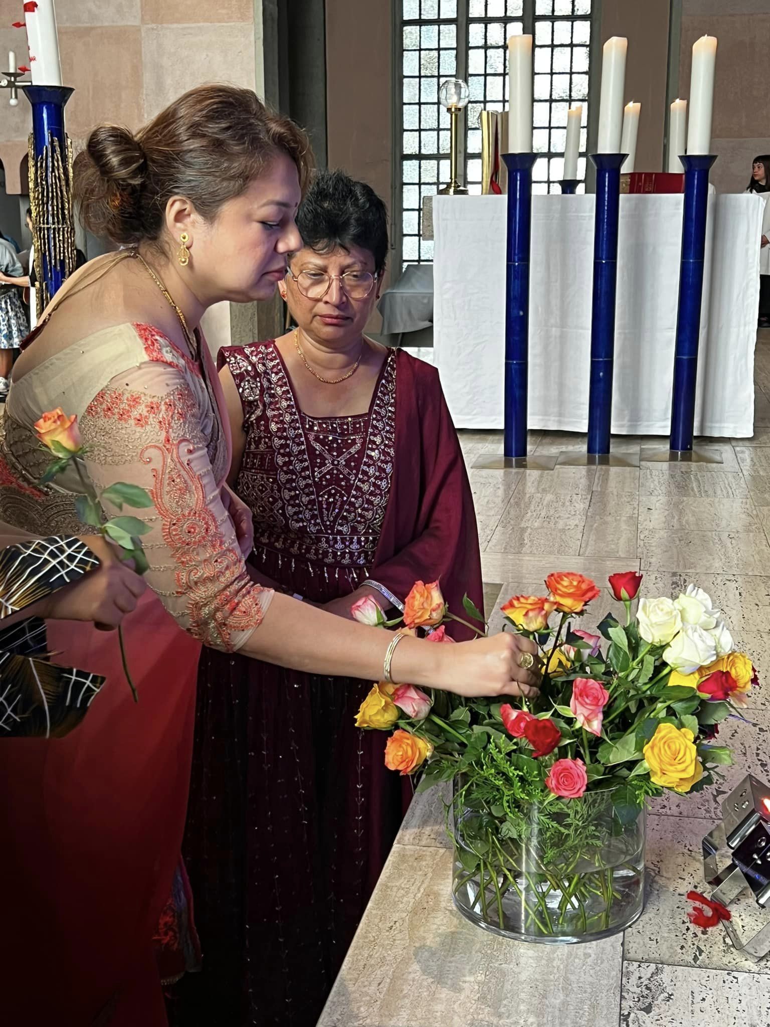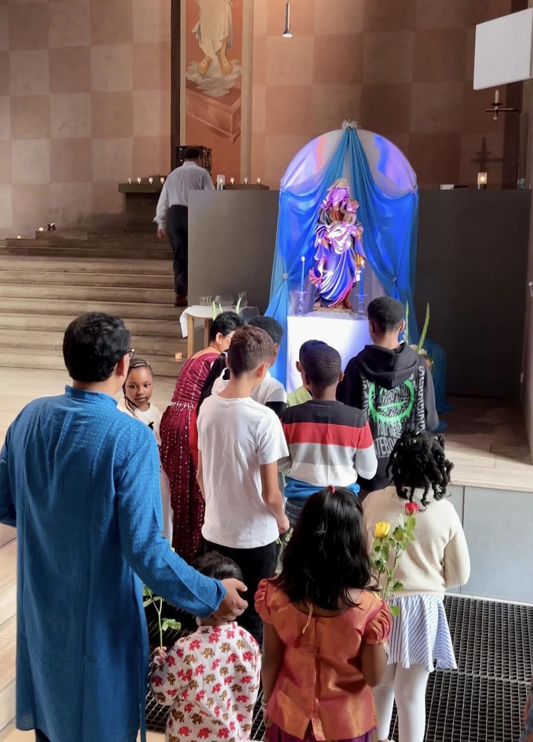 Parishioners from India, Pakistan and Sri Lanka held their annual celebration of the Solemnity of the Nativity of the Blessed Virgin Mary at Holy Cross during the Sunday Mass on Sept. 8, 2024, with the choir singing hymns in the region's various languages and the community providing special symbolic gifts at the Offertory and a pot-luck lunch at the weekly after-Mass social. Click on the photo for a gallery of pictures from the day.